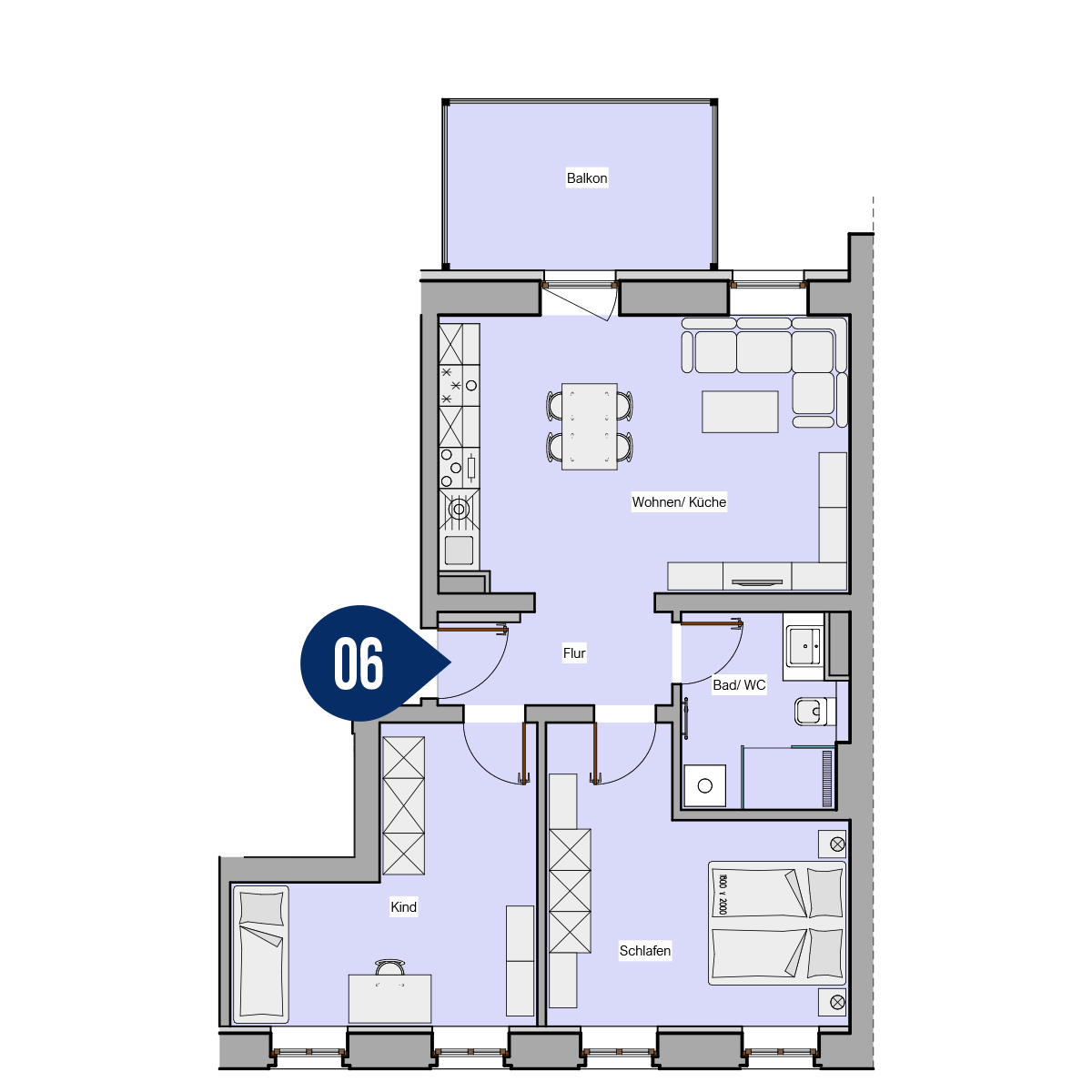 - Wohnfläche von 57,40 bis 91,52 qm